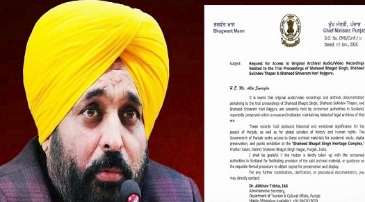 ਬ੍ਰਿਟਿਸ਼ ਡਿਪਟੀ ਹਾਈ ਕਮਿਸ਼ਨ ਨੂੰ CM ਮਾਨ ਵੱਲੋਂ ਪੱਤਰ, ਸ਼ਹੀਦ ਭਗਤ ਸਿੰਘ, ਸੁਖਦੇਵ ਤੇ ਰਾਜਗੁਰੂ ਦੀ ਕੋਰਟ ਟ੍ਰਾਇਲ ਦੀ ਪ੍ਰੋਸੀਡਿੰਗ ਦੀ ਕੀਤੀ ਮੰਗ