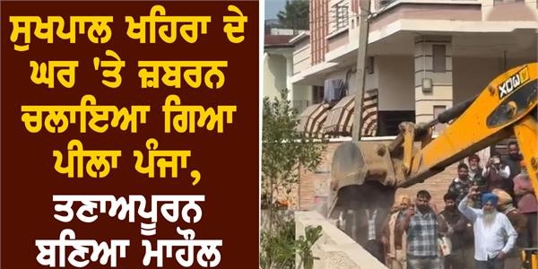 ਸੁਖਪਾਲ ਖਹਿਰਾ ਦੇ ਘਰ ‘ਤੇ ਜ਼ਬਰਦਸਤੀ ਚਲਾਇਆ ਗਿਆ ਪੀਲਾ ਪੰਜਾ, ਇਲਾਕੇ ਵਿੱਚ ਤਣਾਅਪੂਰਨ ਮਾਹੌਲ ਪੈਦਾ