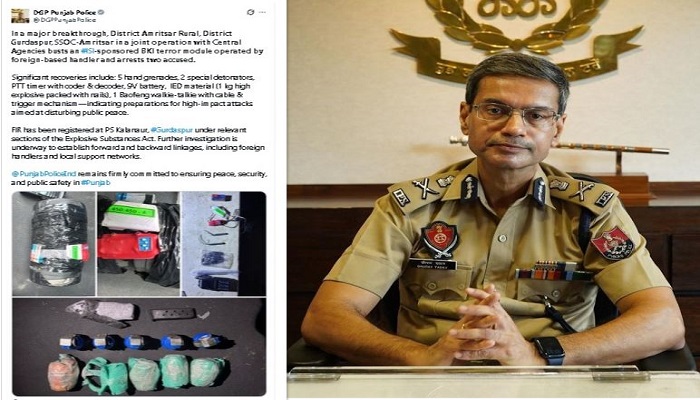 ਪੰਜਾਬ ਪੁਲਿਸ ਨੂੰ ਵੱਡੀ ਸਫਲਤਾ, 5 ਹੈਂਡ ਗ੍ਰਨੇਡ ਸਮੇਤ ਦੋ ਮੁਲਜ਼ਮ ਗ੍ਰਿਫ਼ਤਾਰ